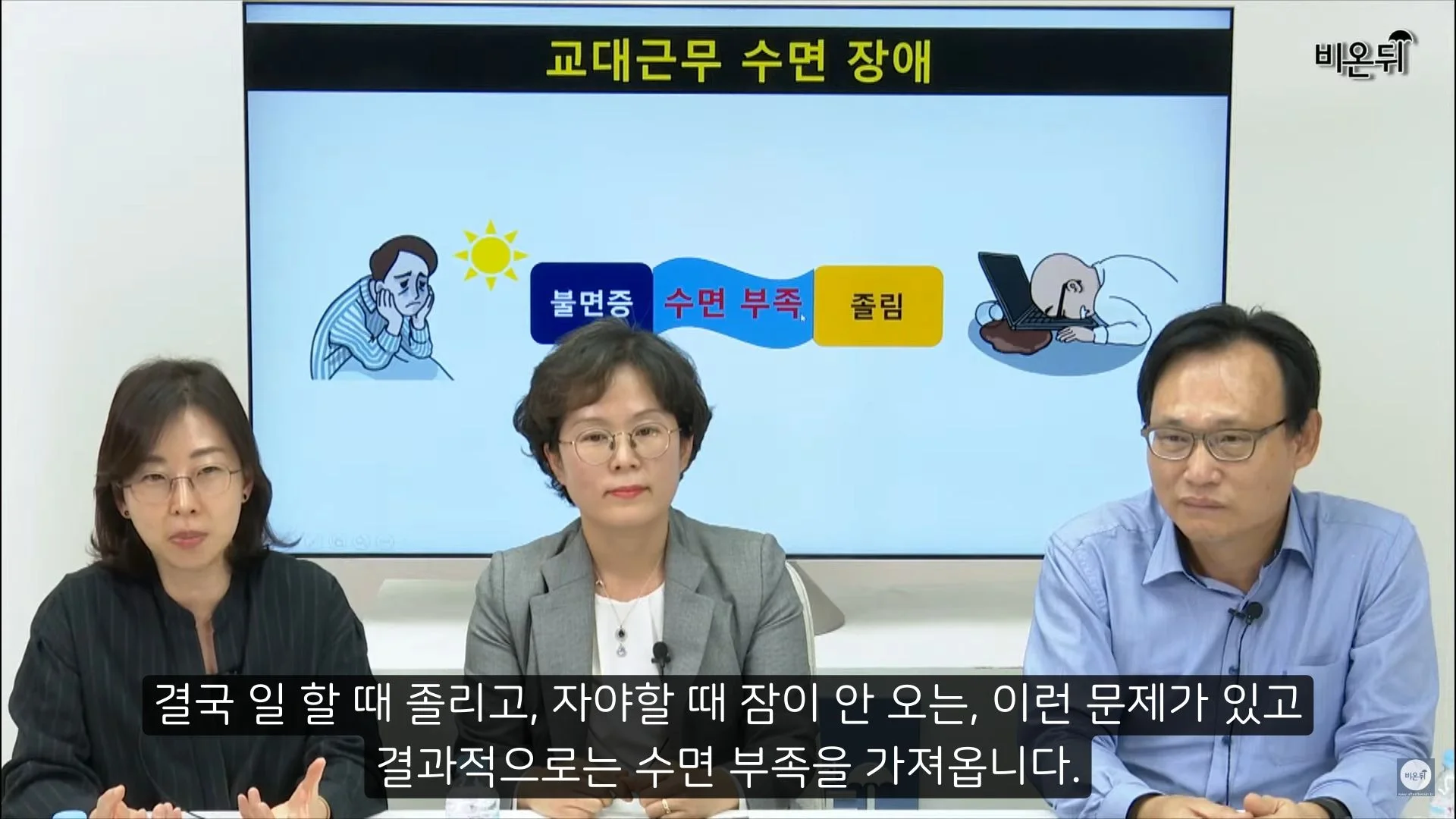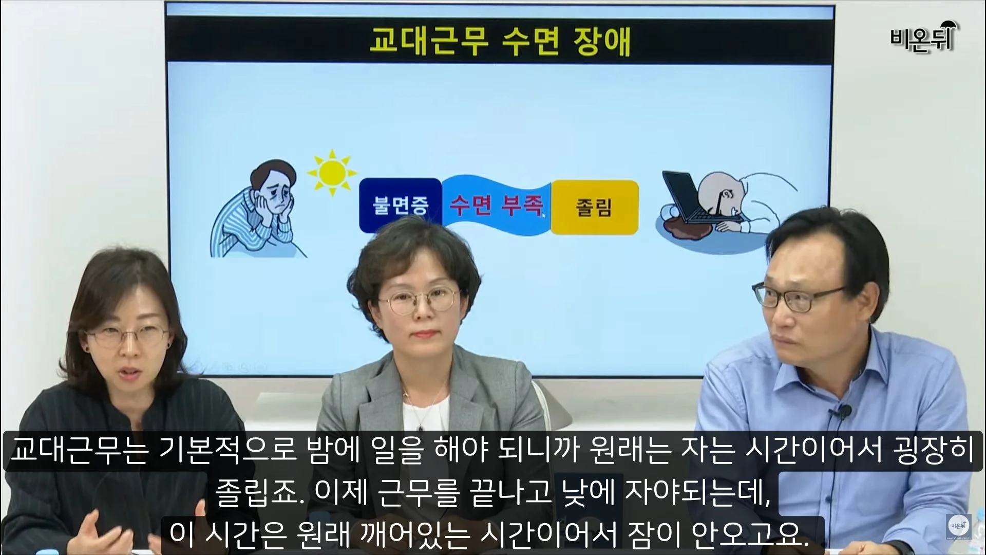 교대근무는 기본적으로 밤에 일하고 낮에 자야 해서 밤낮이 바뀌게 됩니다. 그래서 자야할 때 잠이오지 않고, 일해야 할 때 잠이 오는 현상이 일어나게 되고, 결국 수면부족 현상이 일어나게 됩니다.