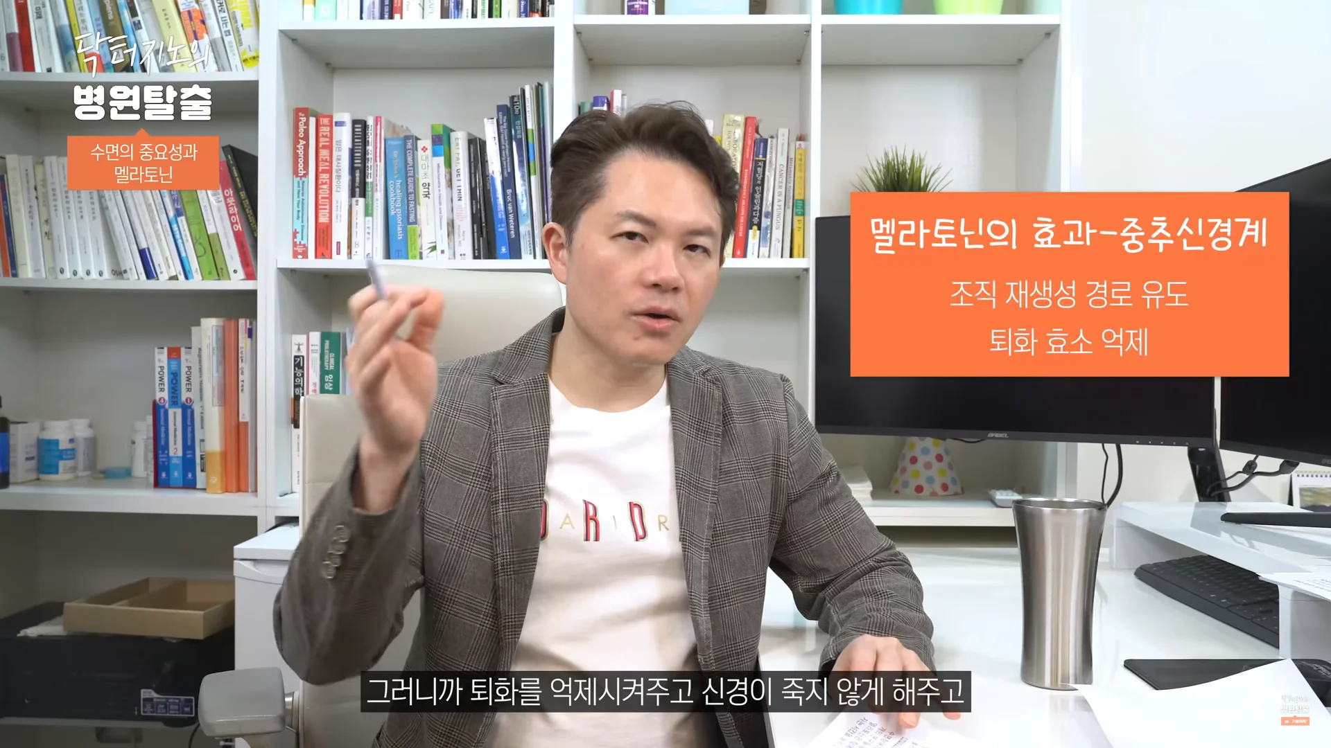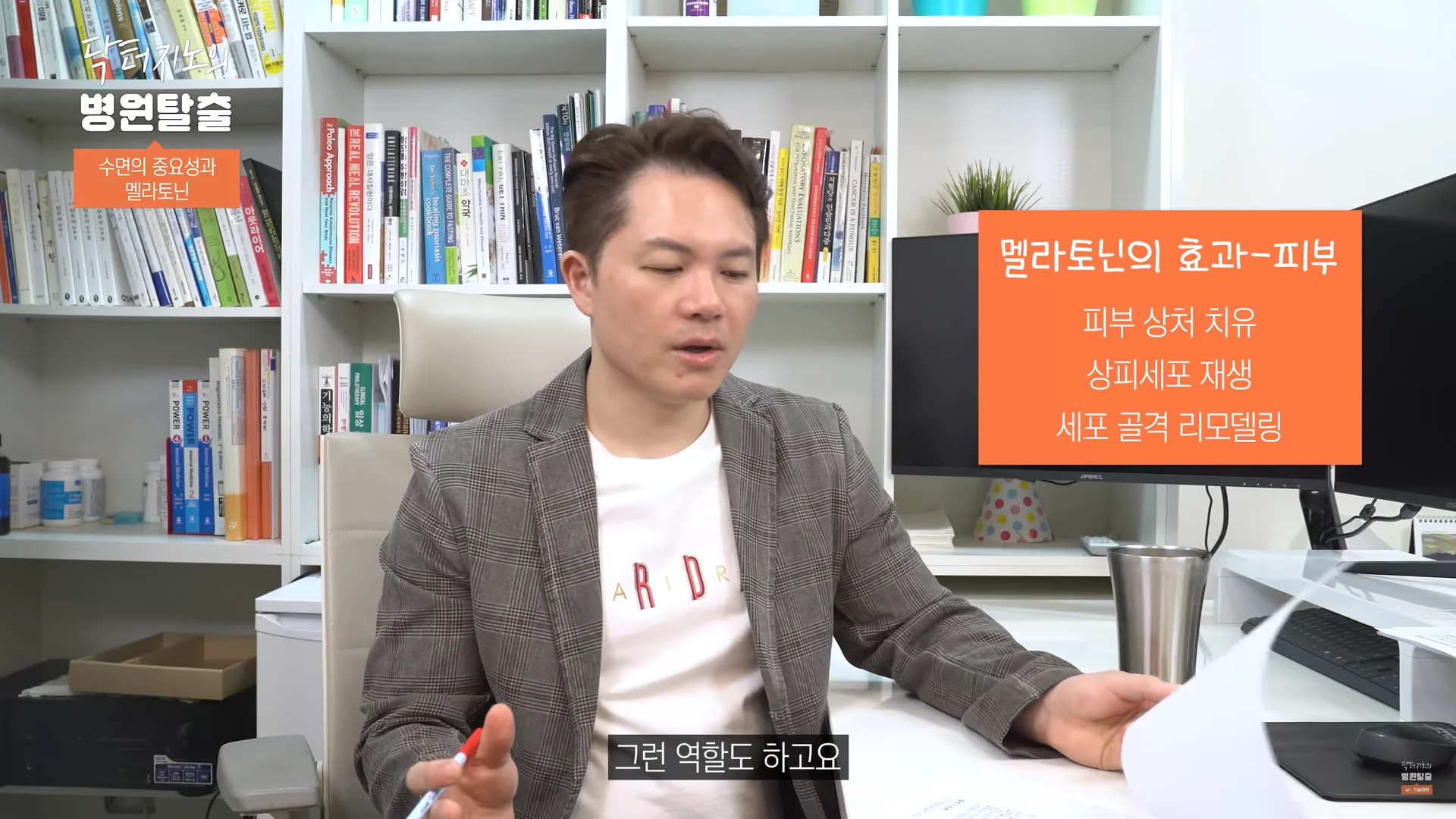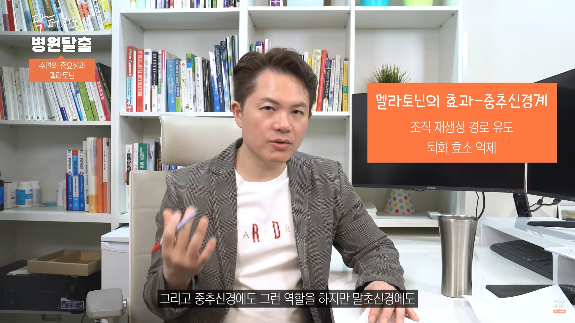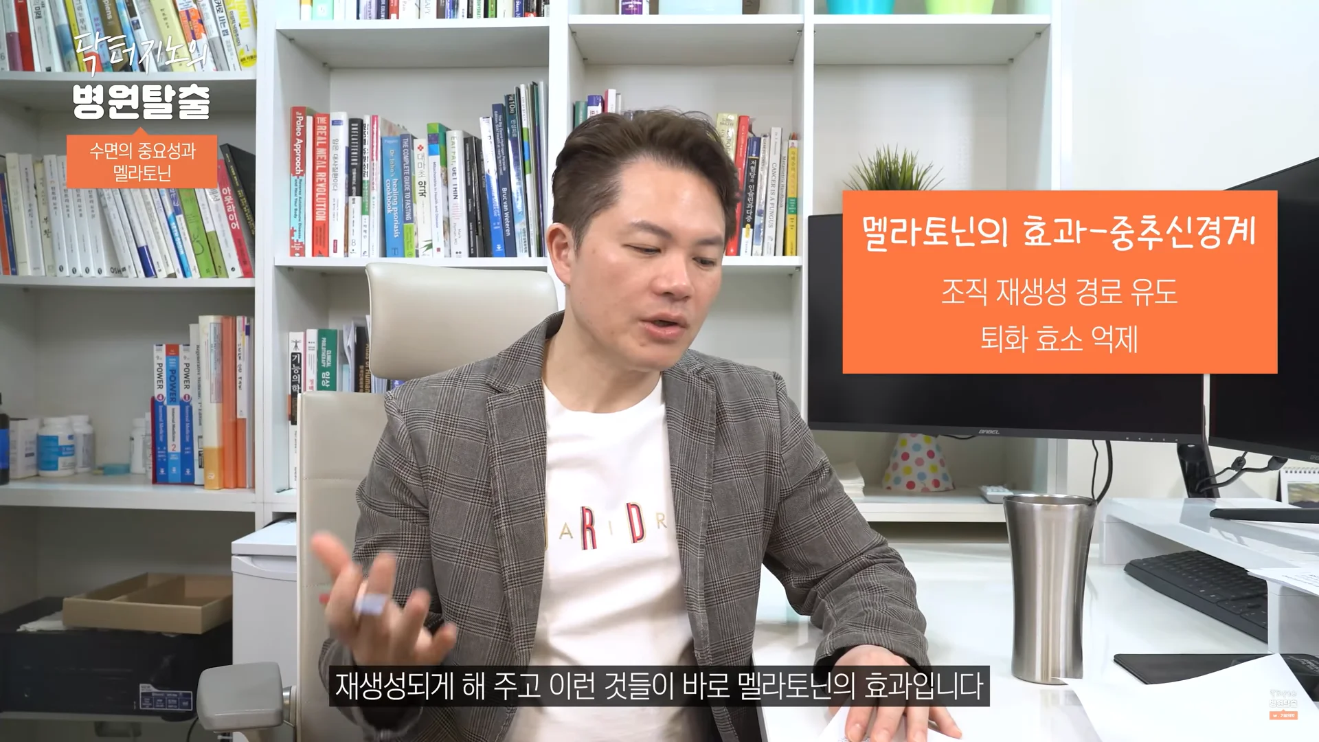멜라토닌은 수면 호르몬으로 알려져 있습니다. 하지만 단순히 잠을 잘 오게 하는 호르몬일 뿐만 아니라, 우리 몸의 다양한 부분에 도움을 주고 있습니다. 피부의 상처를 치유하고, 근육과 뼈를 튼튼하게 하며 간의 항산화 물질을 높이고 신경세포가 재생성 되는 것을 돕습니다. 이 밖에도 방광, 신장 등 우리 몸의 다양한 조직의 재생과 해독을 돕습니다.